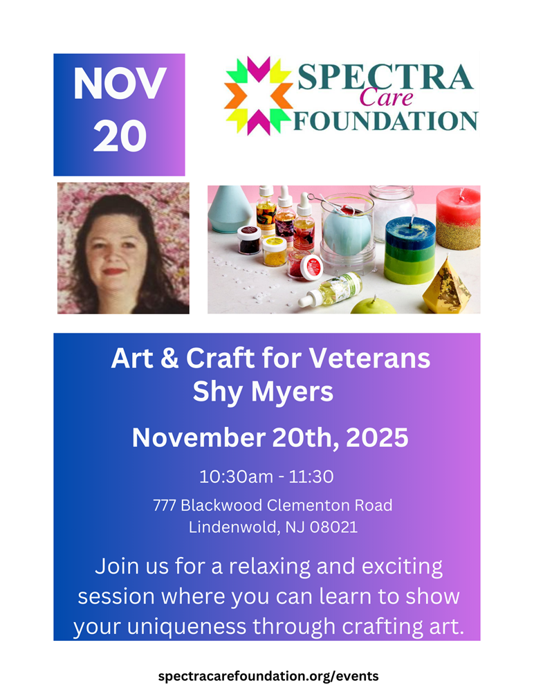 Veterans join Shy Myers on Thursday, November 20th, from 10:30 am to 11:30 am at the Carlton R. Rouh Veterans Center for a relaxing and exciting session where you can learn to show your uniqueness through crafting art. Represent your branch of service! More information here!