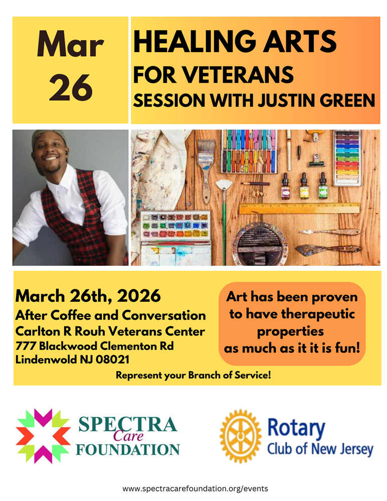 Get ready for an evening of creativity, fun, and veteran support! Join us for the Spectracare Foundation’s Sip N Paint event, a delightful fusion of art and relaxation, hosted at the VFW Post 3324 in Runnemede, NJ, on Saturday, March 21st, 2026, at 4:00 pm. Under the expert guidance of talented instructor Justin Green, you’ll create your masterpiece while enjoying a delicious dinner and beverages. More information here! Buy Tickers Here!